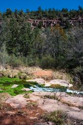 Keywords: arizona coconino national forest coconinonationalforest forest service forestservice fossil creek fossilcreek fossil springs fossilsprings fossil springs wilderness fossilspringswilderness national forest nationalforest red rock ranger district redrockrangerdistrict tonto national forest tontonationalforest backpacking canyon desert forest hiking outdoors spring springtime trail wilderness strawberry united states unitedstates Fossil Springs begin approximately three quarters of a mile above the old Fossil Creek Dam. A series of springs gush 20,000 gallons a minute year-round at the bottom of a 1,600 foot deep canyon, creating a lush riparian oasis rich with life, and feeding Fossil Creek Wild and Scenic River. Over the years these calcium laden waters have laid down huge deposits of a type of limestone called travertine, creating deep pools for miles along the creek. The Wilderness and surrounding area are on the Tonto and Coconino National Forests, and are managed by the Coconino National Forest. During the spring-summer season, camping is prohibited in Fossil Springs Wilderness and the surrounding area, and a reserved parking permit is required to park at the trailheads that access the Wilderness. See Fossil Springs Wilderness and Fossil Creek on the USFS Coconino National Forest website for maps, regulations, permit reservations, and other details. Photo by Deborah Lee Soltesz. Source: USFS Coconino National Forest. Fossil Springs begin approximately three quarters of a mile above the old Fossil Creek Dam. A series of springs gush 20,000 gallons a minute year-round at the bottom of a 1,600 foot deep canyon, creating a lush riparian oasis rich with life, and feeding Fossil Creek Wild and Scenic River. Over the years these calcium laden waters have laid down huge deposits of a type of limestone called travertine, creating deep pools for miles along the creek. The Wilderness and surrounding area are on the Tonto and Coconino National Forests, and are managed by the Coconino National Forest. During the spring-summer season, camping is prohibited in Fossil Springs Wilderness and the surrounding area, and a reserved parking permit is required to park at the trailheads that access the Wilderness. See Fossil Springs Wilderness and Fossil Creek on the USFS Coconino National Forest website for maps, regulations, permit reservations, and other details. Photo by Deborah Lee Soltesz. Source: USFS Coconino National Forest.