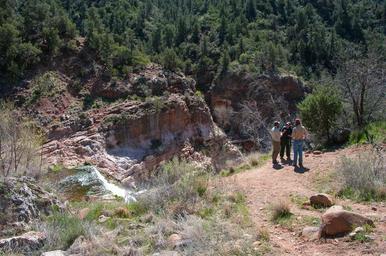 | Keywords: arizona coconino national forest coconinonationalforest forest service forestservice fossil creek fossilcreek fossil springs fossilsprings fossil springs trail fossilspringstrail fossil springs trail #18 fossilspringstrail18 fossil springs trail no. 18 fossilspringstrailno18 fossil springs wilderness fossilspringswilderness national forest nationalforest red rock ranger district redrockrangerdistrict tonto national forest tontonationalforest backpacking canyon desert forest hiking outdoors spring springtime trail trail crew trailcrew wilderness strawberry united states unitedstates The trail ends at the old Fossil Creek Dam, which was decommissioned in 2005 to allow the creek to flow free. A trail crew of Coconino National Forest employees (Adrian, Kyle, and Ring) and Arizona Civilian Conservation Corps volunteers (Ben and Lindsay) worked their way through Fossil Springs Wilderness from Fossil Springs Trailhead to Flume Trailhead for three days. They picked up trash, made repairs and improvements to Fossil Springs and Flume trails, added signs to make it easier for hikers to find their way, and cleared brush and overgrowth from the trails. Fossil Springs Trail descends approximately 1400' over 4 miles to the springs for which Fossil Springs Wilderness was named. The trail starts off wide and smooth, but becomes progressively rockier as it winds its way down into the canyon. At approximately 4 miles in, a short, marked side trail leads off to the first springs source, where many hikers refill their water bottles. There are a few campsites near the creek (camp at least 100' from the creek) for about a quarter mile. The last half mile of the trail skirts along a steep-walled, narrow section of the canyon, offering no camping or access to the creek. The trail reaches the old Fossil Creek Dam at 4.75 miles, where the trail ends and meets Flume Trail. Camping is prohibited at and below the Fossil Creek Dam for several miles down the canyon. The trail is in the Fossil Creek Wilderness. Bikes and mechanized vehicles are prohibited. There is no creek access for the first four miles of this trail. The trail is very exposed and extremely hot in the warmer months. Hikers should carry at least four quarts of water. The trail is very rocky. Hiking shoes or boots are strongly recommended. Fossil Creek is one of two Wild and Scenic rivers in Arizona. A series of springs gush 20,000 gallons a minute year-round at the bottom of a 1,600 foot deep canyon, creating a lush riparian oasis rich with life. Over the years these calcium laden waters have laid down huge deposits of a type of limestone called travertine, creating deep pools for miles along the creek. The Wilderness and surrounding area are on the Tonto and Coconino National Forests, and are managed by the Coconino National Forest. During the spring-summer season, camping is prohibited and a reserved parking permit is required to park at the trailhead. See Fossil Springs Trail and Fossil Creek on the USFS Coconino National Forest website for maps, regulations, permit reservations, and other details. Photo by Deborah Lee Soltesz. Source: USFS Coconino National Forest. The trail ends at the old Fossil Creek Dam, which was decommissioned in 2005 to allow the creek to flow free. A trail crew of Coconino National Forest employees (Adrian, Kyle, and Ring) and Arizona Civilian Conservation Corps volunteers (Ben and Lindsay) worked their way through Fossil Springs Wilderness from Fossil Springs Trailhead to Flume Trailhead for three days. They picked up trash, made repairs and improvements to Fossil Springs and Flume trails, added signs to make it easier for hikers to find their way, and cleared brush and overgrowth from the trails. Fossil Springs Trail descends approximately 1400' over 4 miles to the springs for which Fossil Springs Wilderness was named. The trail starts off wide and smooth, but becomes progressively rockier as it winds its way down into the canyon. At approximately 4 miles in, a short, marked side trail leads off to the first springs source, where many hikers refill their water bottles. There are a few campsites near the creek (camp at least 100' from the creek) for about a quarter mile. The last half mile of the trail skirts along a steep-walled, narrow section of the canyon, offering no camping or access to the creek. The trail reaches the old Fossil Creek Dam at 4.75 miles, where the trail ends and meets Flume Trail. Camping is prohibited at and below the Fossil Creek Dam for several miles down the canyon. The trail is in the Fossil Creek Wilderness. Bikes and mechanized vehicles are prohibited. There is no creek access for the first four miles of this trail. The trail is very exposed and extremely hot in the warmer months. Hikers should carry at least four quarts of water. The trail is very rocky. Hiking shoes or boots are strongly recommended. Fossil Creek is one of two Wild and Scenic rivers in Arizona. A series of springs gush 20,000 gallons a minute year-round at the bottom of a 1,600 foot deep canyon, creating a lush riparian oasis rich with life. Over the years these calcium laden waters have laid down huge deposits of a type of limestone called travertine, creating deep pools for miles along the creek. The Wilderness and surrounding area are on the Tonto and Coconino National Forests, and are managed by the Coconino National Forest. During the spring-summer season, camping is prohibited and a reserved parking permit is required to park at the trailhead. See Fossil Springs Trail and Fossil Creek on the USFS Coconino National Forest website for maps, regulations, permit reservations, and other details. Photo by Deborah Lee Soltesz. Source: USFS Coconino National Forest. |