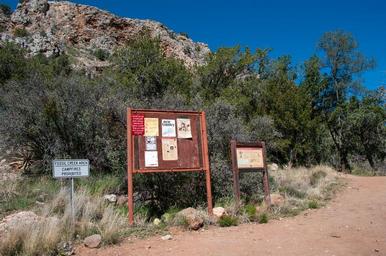 | Keywords: arizona coconino national forest coconinonationalforest forest service forestservice fossil creek fossilcreek fossil springs fossilsprings fossil springs trail fossilspringstrail fossil springs trail #18 fossilspringstrail18 fossil springs trail no. 18 fossilspringstrailno18 fossil springs wilderness fossilspringswilderness national forest nationalforest red rock ranger district redrockrangerdistrict tonto national forest tontonationalforest backpacking canyon desert forest hiking outdoors sign spring springtime trail trail sign trailsign wilderness strawberry united states unitedstates The trail ends at a kiosk at the old Fossil Creek Dam and junction with Flume Trail. Fossil Springs Trail descends approximately 1400' over 4 miles to the springs for which Fossil Springs Wilderness was named. The trail starts off wide and smooth, but becomes progressively rockier as it winds its way down into the canyon. At approximately 4 miles in, a short, marked side trail leads off to the first springs source, where many hikers refill their water bottles. There are a few campsites near the creek (camp at least 100' from the creek) for about a quarter mile. The last half mile of the trail skirts along a steep-walled, narrow section of the canyon, offering no camping or access to the creek. The trail reaches the old Fossil Creek Dam at 4.75 miles, where the trail ends and meets Flume Trail. Camping is prohibited at and below the Fossil Creek Dam for several miles down the canyon. The trail is in the Fossil Creek Wilderness. Bikes and mechanized vehicles are prohibited. There is no creek access for the first four miles of this trail. The trail is very exposed and extremely hot in the warmer months. Hikers should carry at least four quarts of water. The trail is very rocky. Hiking shoes or boots are strongly recommended. Fossil Creek is one of two Wild and Scenic rivers in Arizona. A series of springs gush 20,000 gallons a minute year-round at the bottom of a 1,600 foot deep canyon, creating a lush riparian oasis rich with life. Over the years these calcium laden waters have laid down huge deposits of a type of limestone called travertine, creating deep pools for miles along the creek. The Wilderness and surrounding area are on the Tonto and Coconino National Forests, and are managed by the Coconino National Forest. During the spring-summer season, camping is prohibited and a reserved parking permit is required to park at the trailhead. See Fossil Springs Trail and Fossil Creek on the USFS Coconino National Forest website for maps, regulations, permit reservations, and other details. Photo by Deborah Lee Soltesz. Source: USFS Coconino National Forest. The trail ends at a kiosk at the old Fossil Creek Dam and junction with Flume Trail. Fossil Springs Trail descends approximately 1400' over 4 miles to the springs for which Fossil Springs Wilderness was named. The trail starts off wide and smooth, but becomes progressively rockier as it winds its way down into the canyon. At approximately 4 miles in, a short, marked side trail leads off to the first springs source, where many hikers refill their water bottles. There are a few campsites near the creek (camp at least 100' from the creek) for about a quarter mile. The last half mile of the trail skirts along a steep-walled, narrow section of the canyon, offering no camping or access to the creek. The trail reaches the old Fossil Creek Dam at 4.75 miles, where the trail ends and meets Flume Trail. Camping is prohibited at and below the Fossil Creek Dam for several miles down the canyon. The trail is in the Fossil Creek Wilderness. Bikes and mechanized vehicles are prohibited. There is no creek access for the first four miles of this trail. The trail is very exposed and extremely hot in the warmer months. Hikers should carry at least four quarts of water. The trail is very rocky. Hiking shoes or boots are strongly recommended. Fossil Creek is one of two Wild and Scenic rivers in Arizona. A series of springs gush 20,000 gallons a minute year-round at the bottom of a 1,600 foot deep canyon, creating a lush riparian oasis rich with life. Over the years these calcium laden waters have laid down huge deposits of a type of limestone called travertine, creating deep pools for miles along the creek. The Wilderness and surrounding area are on the Tonto and Coconino National Forests, and are managed by the Coconino National Forest. During the spring-summer season, camping is prohibited and a reserved parking permit is required to park at the trailhead. See Fossil Springs Trail and Fossil Creek on the USFS Coconino National Forest website for maps, regulations, permit reservations, and other details. Photo by Deborah Lee Soltesz. Source: USFS Coconino National Forest. |