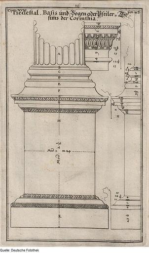 | Keywords: Fotothek df tg 0001632 Architektur ^ Bauwesen ^ Säule ^ Bogen ^ korinthische Ordnung.jpg Scan Deutsche Fotothek df_tg_0001632 color 2007 MIK-Center Berlin GmbH 88961632 Kap 17 Fig 16 Bl 43 Nürnberg Piedestal Basis und Bogen oder Pfeilergesims der Säule korinthischer Ordnung Papier Kupferstich 31 4 x 19 cm Architektur Bauwesen Säule Bogen korinthische Ordnung ppn26553190X 1698 Druck Deutsche Fotothek gefördert von der Deutschen Forschungsgemeinschaft Projekt Technikgeschichte 16 /17 Jh Verwalter Dresden Sächsische Landesbibliothek - Staats- und Universitätsbibliothek Dresden Archit 188 Herstellung Herstellung Endter Verleger aus Palladio Andreas Böckler Georg Andreas Hrsg Buch Die Baumeisterin Pallas Oder Der in Teutschland entstandene Palladius das ist Des vortrefflich-Italiänischen Baumeisters Andreae Palladii Zwey Bücher Von der Baukunst Deren Erstes I Von denen Materialien die zu dem Bauen insgemein gehören Das Zweyte tractiret I Von denen Zierrathen der gemeinen Gebäue Das XVII Capitel Von dem Ordine Corinthio SLUB Archit 188 Fotothek-License PD-old-100 Scans Old Manuscripts from the Deutsche Fotothek |