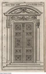 | Keywords: Fotothek df tg 0001650 Architektur ^ Bauwesen ^ Tür ^ korinthische Ordnung.jpg Scan Deutsche Fotothek df_tg_0001650 color 2007 MIK-Center Berlin GmbH 88961650 Kap 26 Fig 34 Bl 56 Nürnberg Tür korinthischer Ordnung Papier Kupferstich 28 5 x 18 1 cm Architektur Bauwesen Tür korinthische Ordnung ppn26553190X 1698 Druck Deutsche Fotothek gefördert von der Deutschen Forschungsgemeinschaft Projekt Technikgeschichte 16 /17 Jh Verwalter Dresden Sächsische Landesbibliothek - Staats- und Universitätsbibliothek Dresden Archit 188 Herstellung Herstellung Endter Verleger aus Palladio Andreas Böckler Georg Andreas Hrsg Buch Die Baumeisterin Pallas Oder Der in Teutschland entstandene Palladius das ist Des vortrefflich-Italiänischen Baumeisters Andreae Palladii Zwey Bücher Von der Baukunst Deren Erstes I Von denen Materialien die zu dem Bauen insgemein gehören Das Zweyte tractiret I Von denen Zierrathen der gemeinen Gebäue Das XXVI Capitel Von den Zierrathen der Thüren und Fenster SLUB Archit 188 Fotothek-License PD-old-100 Scans Old Manuscripts from the Deutsche Fotothek |