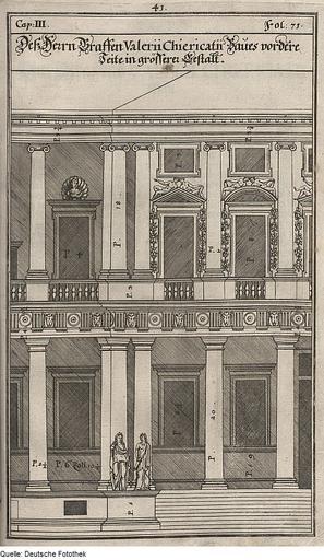 | Keywords: Fotothek df tg 0001657 Architektur ^ Bauwesen ^ Gebäude.jpg Scan Deutsche Fotothek df_tg_0001657 color 2007 MIK-Center Berlin GmbH 88961657 Kap 3 Fig 41 Bl 71 Nürnberg Vorderansicht des Palazzo Chiericati in Vicenza Papier Kupferstich 31 2 x 19 2 cm Architektur Bauwesen Gebäude ppn26553190X 1698 Druck Deutsche Fotothek gefördert von der Deutschen Forschungsgemeinschaft Projekt Technikgeschichte 16 /17 Jh Verwalter Dresden Sächsische Landesbibliothek - Staats- und Universitätsbibliothek Dresden Archit 188 Herstellung Herstellung Endter Verleger aus Palladio Andreas Böckler Georg Andreas Hrsg Buch Die Baumeisterin Pallas Oder Der in Teutschland entstandene Palladius das ist Des vortrefflich-Italiänischen Baumeisters Andreae Palladii Zwey Bücher Von der Baukunst Deren Erstes I Von denen Materialien die zu dem Bauen insgemein gehören Das Zweyte tractiret I Von denen Zierrathen der gemeinen Gebäue Das III Capitel Von den Stadt-Gebäuen SLUB Archit 188 Fotothek-License PD-old-100 Scans Old Manuscripts from the Deutsche Fotothek |