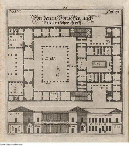 | Keywords: Fotothek df tg 0001671 Architektur ^ Bauwesen ^ Hof ^ toskanische Ordnung.jpg Scan Deutsche Fotothek df_tg_0001671 color 2007 MIK-Center Berlin GmbH 88961671 Kap 4 Fig 55 Bl 79 Nürnberg Vorhof toskanischer Ordnung Papier Kupferstich 19 5 x 18 cm Architektur Bauwesen Hof toskanische Ordnung ppn26553190X 1698 Druck Deutsche Fotothek gefördert von der Deutschen Forschungsgemeinschaft Projekt Technikgeschichte 16 /17 Jh Verwalter Dresden Sächsische Landesbibliothek - Staats- und Universitätsbibliothek Dresden Archit 188 Herstellung Herstellung Endter Verleger aus Palladio Andreas Böckler Georg Andreas Hrsg Buch Die Baumeisterin Pallas Oder Der in Teutschland entstandene Palladius das ist Des vortrefflich-Italiänischen Baumeisters Andreae Palladii Zwey Bücher Von der Baukunst Deren Erstes I Von denen Materialien die zu dem Bauen insgemein gehören Das Zweyte tractiret I Von denen Zierrathen der gemeinen Gebäue Das III Capitel Von den Stadt-Gebäuen SLUB Archit 188 Fotothek-License PD-old-100 Scans Old Manuscripts from the Deutsche Fotothek |
