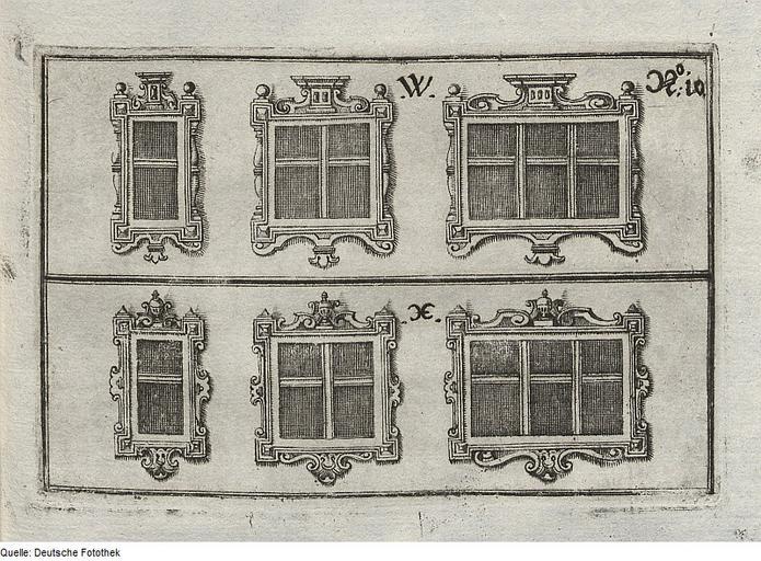 | Keywords: Fotothek df tg 0002972 Architektur ^ Fenstereinfassung ^ Fensterrahmen ^ Fenster ^ Gesims.jpg Scan Deutsche Fotothek df_tg_0002972 color 2007 MIK-Center Berlin GmbH 88962972 zwischen S 30 und 31 Blatt Nr 10 Augsburg Fenstereinfassungen unterhalb des Dachgesimses und Verkleidungen Papier Kupferstich 8 8 x 13 cm Architektur Fenstereinfassung Fensterrahmen Fenster Gesims ppn266930085 1667 Druck Deutsche Fotothek gefördert von der Deutschen Forschungsgemeinschaft Projekt Technikgeschichte 16 /17 Jh Verwalter Dresden Sächsische Landesbibliothek - Staats- und Universitätsbibliothek Dresden Archit 595-8/9 misc 2 Herstellung Schultes Johann Drucker Herstellung Furttenbach Joseph der Jüngere Kupferstecher aus Furttenbach Joseph Buch Allgemeine deutsche Baukunst Garten-Pallästlins-Gebäw; Der Neundte Theil; in welchem gar umständlich zu vernehmen wie ein Lust- Sommer- oder Villa-Haus im freyen Feld dastehend einem Garten-Pallästlin zu vergleichen auch mancherley feinen Architectonischen mit geringen Unkosten in das Werck selbsten zustellenden albereit experimentirten liebreichen Zieraden köndte aufgebauet und alsdann zu Nutzen und Recreation möge gebraucht und gaudirt werden Von den Fenster-Gerichter Das Kupfferblat N 10 SLUB Archit 595-8/9 misc 2 Fotothek-License PD-old-100 Joseph Furttenbach d J Old Manuscripts from the Deutsche Fotothek |