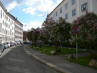 Keywords: Fougstads gate syrener.JPG Fougstads gate på Ila i Oslo Syrenblomstring Tat fra gatenr ca 35 Bildet er tatt av brukeren og er hans eiendom 2006-05-29 own assumed Helge Høifødt Fougstads gate Oslo