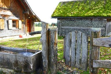 Keywords: fountain home live wood stock hut scale log cabin water drink nature