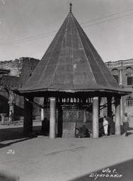 | Keywords: diyarbakır ulu camii diyarbakırulucamii great mosque of diyarbakır greatmosqueofdiyarbakır avlu courtyard şadırvan ablution fountain ablutionfountain mimari architecture diyarbakır salt araştırma saltaraştırma salt research saltresearch salt online saltonline blackandwhite outdoor black and white www.archives.saltresearch.org/R/-?func=dbin-jump-full&amp... Diyarbakır Ulu Camii’nin avlusundaki şadırvan “639 yılında, Hz. Ömer’in halifeliği döneminde, Diyarbakır’a egemen olan Müslüman Araplar tarafından yaptırılmıştır. Önceden Mar Thoma Kilisesi olan Ulu Cami, Anadolu’nun bilinen en eski camisidir. Erken İslam Dönemi’nin ünlü Şam Emeviye Camii’nin Anadolu’ya yansıması olarak yorumlanır. Farklı dönemlerde yapılan onarım ve eklentilerle bugünkü şeklini almıştır. Hanifiler bölümü, Şafiiler bölümü, Mesudiye Medresesi ve Zinciriye Medresesi’nden oluşan bir yapılar grubudur. Avlu cephelerindeki farklı dönemlere ait mimari bezemeler, kabartma ve yazıtlar büyük bir uyum içerisinde yerleştirilmiştir.” Kaynak: Ayşe Üçok, “Güneydoğu Anadolu Rehberi: Uygarlığın Öyküsü”, Gaziantep Ticaret Odası, 2007. SALT Araştırma - Ali Saim Ülgen Arşivi www.archives.saltresearch.org/R/-?func=dbin-jump-full&amp... Diyarbakır Ulu Camii’nin avlusundaki şadırvan “639 yılında, Hz. Ömer’in halifeliği döneminde, Diyarbakır’a egemen olan Müslüman Araplar tarafından yaptırılmıştır. Önceden Mar Thoma Kilisesi olan Ulu Cami, Anadolu’nun bilinen en eski camisidir. Erken İslam Dönemi’nin ünlü Şam Emeviye Camii’nin Anadolu’ya yansıması olarak yorumlanır. Farklı dönemlerde yapılan onarım ve eklentilerle bugünkü şeklini almıştır. Hanifiler bölümü, Şafiiler bölümü, Mesudiye Medresesi ve Zinciriye Medresesi’nden oluşan bir yapılar grubudur. Avlu cephelerindeki farklı dönemlere ait mimari bezemeler, kabartma ve yazıtlar büyük bir uyum içerisinde yerleştirilmiştir.” Kaynak: Ayşe Üçok, “Güneydoğu Anadolu Rehberi: Uygarlığın Öyküsü”, Gaziantep Ticaret Odası, 2007. SALT Araştırma - Ali Saim Ülgen Arşivi |