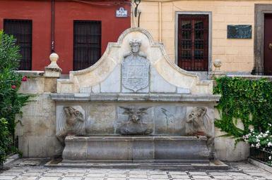 | Keywords: Fountain square Santa Ana Granada Spain.jpg fr Fontaine place Santa Ana Grenade Espagne en Fountain Santa Ana square Granada Spain 2012-08-12 12 40 55 own Jebulon 37 177167 -3 594927 cc-zero Uploaded with UploadWizard Fountains in Granada Bulls in art Reliefs of coats of arms in Granada province Street signs in Andalusia Plaques in Spain Quality images by Jebulon Quality images of Granada Quality images of plaques QualityImage | ||||