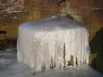 Keywords: fountain water ice frozen icicle winter cold on frozen