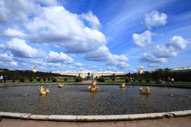 Keywords: fountains water spouting pond gardens sky clouds