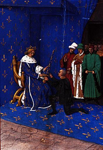 View Original:fouquet_charles_v_gives_sword_constable_bertrand_du_guesclin_1460.jpg (1122x1628)