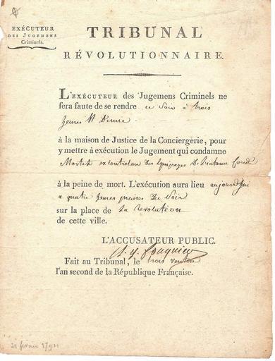 | Keywords: Fouquier.jpg Acte de condamnation à mort signé par Fouquier Tinville accusateur public au comité de salut public pendant la révolution française PD-art Antoine Quentin Fouquier-Tinville Autographs from the French Revolution Artworks missing infobox template |