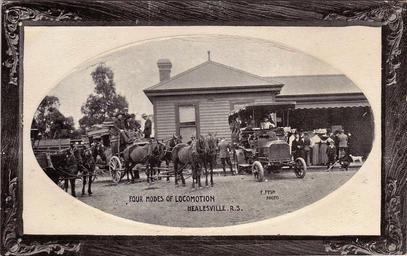 | Keywords: e fysh efysh automobile car buggy horse healesville victoria australia vintage locomotion transport train railway station railwaystation photo border text Four modes of locomotion, Healesville, Victoria - early 1900s Explore Aussie~mobs' 9124 photos on Flickr! |