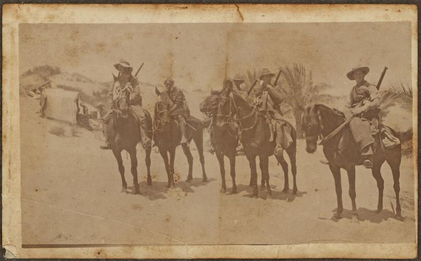 | Keywords: world war i worldwari auckland mounted rifles aucklandmountedrifles palestine egypt photo border monochrome First trooper is holding the reins of the Arab man's horse. Others have two children and a woman in front of them.Tent in background. First trooper is holding the reins of the Arab man's horse. Others have two children and a woman in front of them.Tent in background. | ||||