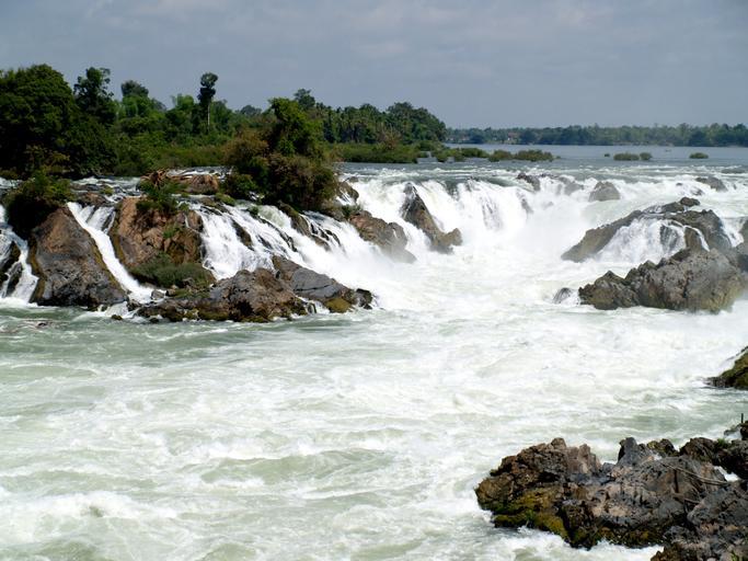 Keywords: four thousand islands laos waterfall jungle landscape river scenery stream torrent tropical