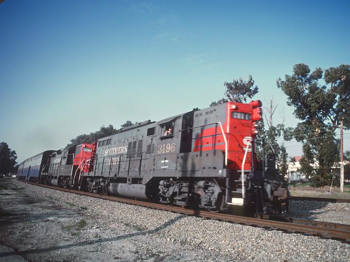 | Keywords: southern pacific southernpacific transit mass transit masstransit public transit publictransit outdoor railroad vehicle train locomotive These are Roger Puta's. All are in January 1985 most probably the day of the Superbowl at Stanford. SP 3196 with Train 36 These are Roger Puta's. All are in January 1985 most probably the day of the Superbowl at Stanford. SP 3196 with Train 36 | ||||