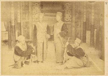 | Keywords: Four Uniformed Soldiers with Their Weapons, China, 1874-75 WDL1900.png Artwork ru Боя ский Адольф- иколай Э азмович fr Boiarskii Adolf-Nikolay Erazmovich en Boiarskii Adolf-Nikolay Erazmovich zh 阿道夫 伊拉莫维奇 鲍 尔斯基 pt Boiarskii Adolf-Nikolay Erazmovich ar أدولف-نيكولاي إرازموفيتش بويارسكي es Boiarskii Adolf-Nikolay Erazmovich ru Четы е солдата в военной фо ме с о ужием Китай 1874 1875 гг fr Quatre soldats en uniforme avec leurs armes en Chine 1874-1875 en Four Uniformed Soldiers with Their Weapons China 1874-75 zh 四个身穿制 手拿武器的士兵 中国, 1874-1875 年 pt Quatro soldados uniformizados com suas armas China 1874-1875 ar أربعة جنود بالزي العسكري يحملون أسلحتهم، الصين 1874-1875 ru В 1874 1875 гг оссийское п авительство нап авило в Китай учено-то говую экспедицию с целью поиска новых сухопутных ма ш утов к китайскому ынку оценок возможностей для более активной то говли и для асположений консульств и фаб ик а также сбо а инфо мации о Дунганском восстании бушевавшем в то в емя в западных айонах Китая Экспедиция уководителем кото ой был полковник Гене ального штаба Ю А Сосновский состояла из девяти человек капитана атусовского топог афа докто а Павла Яковлевича Пясецкого научного сот удника пе еводчиков с усского и китайского языков т оих казаков и фотог афа экспедиции Адольфа Э азмовича Боя ского Экспедиция отп авилась из Санкт-Пете бу га в Шанхай че ез Улан-Бато онголия Пекин и Тяньцзинь и затем последовала по ма ш уту вдоль еки Янцзы по Великому шелковому пути п оходя че ез оазис Хами к озе у Зайсан об атно в Россию Боя ский сделал около 200 снимков кото ые легли в основу уникальных мате иалов для изучения Китая того в емени Большая часть фотог афий вошла в этот альбом кото ый позже стал частью коллекции Те езы К истины а ии соб анной импе ато ом Б азилии Пед у II и пе еданной им ациональной библиотеке Б азилии <br>Китайцы; Память ми а; Военная фо ма; Солдаты; О ужие fr En 1874-1875 le gouvernement russe organisa une mission commerciale et de recherche en Chine Cette mission avait pour objectif de trouver de nouvelles routes terrestres vers le marché chinois d'étudier les perspectives d'une expansion commerciale de rechercher des sites pour l'installation de consulats et d'usines et de recueillir des informations sur la révolte de Dungan qui faisait alors rage dans les provinces de la Chine occidentale Composée de 9 hommes et dirigée par le lieutenant-colonel Iulian A Sosnovskii de l'état-major général de l'armée cette mission comprenait également un topographe le capitaine Matusovskii un responsable scientifique le Dr Pavel Iakovlevich Piasetskii des interprètes chinois et russes trois sous-officiers cosaques et le photographe de la mission Adolf Erazmovich Boiarskii La mission se déroula de Saint-Pétersbourg à Shanghai en passant par Oulan-Bator Mongolie Pékin et Tianjin Elle longea ensuite le fleuve Yangtsé et suivit la grande Route de la soie à travers l'oasis Hami et jusqu'au lac Zaysan de retour en Russie Adolf Erazmovich Boiarskii prit quelque 200 photographies ce qui constitue une source unique pour l'étude de la Chine de cette période La plupart des photographies prises durant cette mission apparaissent dans cet album lequel rejoignit par la suite la collection Thereza Christina Maria rassemblée par l'empereur Pierre II du Brésil qui en fit don à la Bibliothèque nationale du Brésil <br>Chinois; Mémoire du monde; Uniformes militaires; Soldats; Armes en In 1874-75 the Russian government sent a research and trading mission to China to seek out new overland routes to the Chinese market report on prospects for increased commerce and locations for consulates and factories and gather information about the Dungan Revolt then raging in parts of western China Led by Lieutenant Colonel Iulian A Sosnovskii of the army General Staff the nine-man mission included a topographer Captain Matusovskii; a scientific officer Dr Pavel Iakovlevich Piasetskii; Chinese and Russian interpreters; three non-commissioned Cossack soldiers; and the mission photographer Adolf Erazmovich Boiarskii The mission proceeded from Saint Petersburg to Shanghai via Ulan Bator Mongolia Beijing and Tianjin and then followed a route along the Yangtze River along the Great Silk Road through the Hami oasis to Lake Zaysan back to Russia Boiarskii took some 200 photographs which constitute a unique resource for the study of China in this period Most of the photographs are included in this album which later became part of the Thereza Christina Maria Collection assembled by Emperor Pedro II of Brazil and given by him to the National Library of Brazil <br>Chinese; Memory of the World; Military uniforms; Soldiers; Weapons zh 1874-1875 年,俄罗斯政 向中国派出 支科学和贸易 察团, 察经由陆路进军中国市 的新 径,调查贸易的增长前景, 寻找合 的