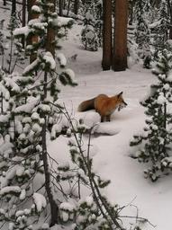 Keywords: fox hunting prey wildlife portrait snow winter forest wilderness predator food yellowstone national park wyoming usa outdoors trees