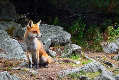 Keywords: fox wildlife animal rocks outdoors nature furry looking