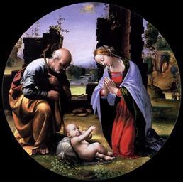 | Keywords: Fra Bartolomeo 001.jpg Artwork Creator Fra Bartolomeo ca 1499 oil canvas Institution Galleria Borghese Rome object history credit line accession number WGA link 1357 http //www wga hu/art/b/bartolom/fra/adoratio jpg http //www wga hu/html/b/bartolom/fra/adoratio html http //mail wikipedia org/pipermail/wikide-l/2005-April/012195 html painting religious Italian 1501-1550 PD-old-100 PD-Art-YorckProject Fra Bartolomeo Renaissance paintings of Holy Family Round pictures Paintings in Galleria Borghese Rome WGA form painting WGA type religious WGA School Italian WGA time period 1501-1550 15th-century paintings from Italy 1499 paintings 15th-century oil on canvas paintings in Italy 1490s paintings in Italy opaque |