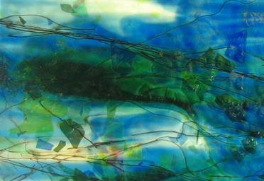 Keywords: Fracturestreamerglass.jpg A sample of fracture streamer glass 2006-09-26 own assumed RogerJ Check categories 2008 November 14 en wikipedia Tiffany_glass Tiffany glass
