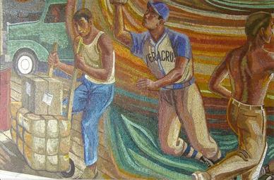 Keywords: Fragmento paquel.jpg es fragmento del mural en el edificio de los Pasquel own Rafar911 Cc-zero Mosaics in Mexico Baseball players from Mexico Jalisco Rosendo Soto