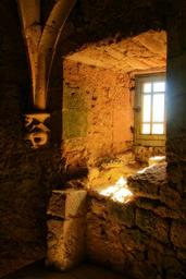 Keywords: france dordogne périgord bridoire castle window sculpture