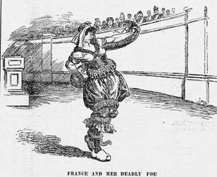 | Keywords: France and Her Deadly Foe - JM Staniforth.png en Political carton by JM Staniforth The Personification of France Marianne struggles in an arena with a python representing the Dreyfus Affair while other nations look on as the crowd http //papuraunewyddcymru llgc org uk/en/page/view/3281510 Evening Express Joseph Morewood Staniforth 1898-12-14 Cartoons by Joseph Morewood Staniforth Political cartoons of the United Kingdom 1890s political cartoons 1898 in France Dreyfus affair Caricature of Marianne John Bull Uncle Sam Snakes in art Clogs in art PD-old-70-1923 |