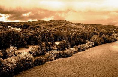 Keywords: france landscape forest trees woods golden color colorful vibrant vivid sky clouds nature outside fields grass beautiful sepia