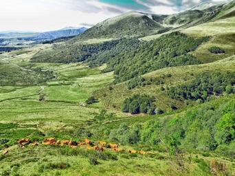 Keywords: france landscape scenic cattle mountains valley sky clouds summer spring forest trees nature outside country countryside rural farm
