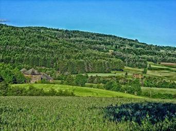 Keywords: france mansion house home mountains landscape scenic hills fields crop farmland rural country countryside nature outside seasons summer forest trees woods hdr