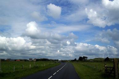 Keywords: france normandy utah beach road sky reported clouds landscape green fields