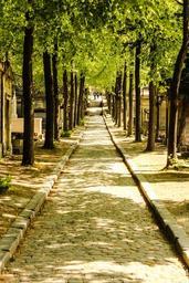 Keywords: france paris cemetery sunlight cimetiere du pere lachaise grave summer trees away path park avenue green warm