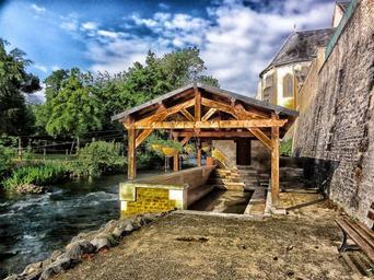 Keywords: france river stream water forest trees nature outside sky clouds building wall hdr