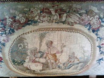 | Keywords: France Sofa covered with Aubusson upholstery (detail).jpg France 3quarter other date century 18 walnut tapestry Institution National Museum Warsaw Myślewicki Palace accession number object history credit line The petit point needlework upholstery depicts themes from the fables of Jean de la Fontaine own See below Cc-zero DEFAULTSORT 1750-1775; Sofa covered with Aubusson upholstery Furniture in the National Museum in Warsaw French art in the National Museum in Warsaw Aubusson tapestries Louis XVI style |