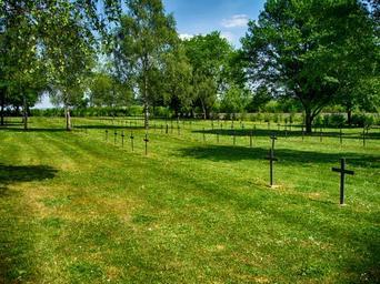 Keywords: france soldier's cemetery headstones summer spring landscape trees grass