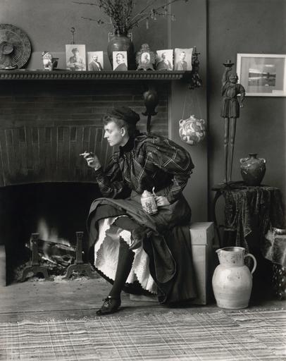 Keywords: Frances Benjamin Johnston, Self-Portrait (as "New Woman"), 1896.png w Frances Benjamin Johnston 's https //www cliohistory org/fileadmin/files/johnston/frances_benjamin_johnston1 pdf Self-Portrait as New Woman a full-length self-portrait of her seated in front of fireplace facing left holding cigarette in one hand and a beer stein in the other in her Washington D C studio LOC-image ppmsca 38981 1896 Creator Frances Benjamin Johnston Restored by Adam Cuerden File Frances Benjamin Johnston Self-Portrait as New Woman 1896 jpg - Restoration JPEG File Frances Benjamin Johnston Self-Portrait as New Woman 1896 png - Restoration PNG File Frances Benjamin Johnston Self-Portrait as New Woman 1896 - Original tiff - Original TIFF PD-Johnston Black and white self-portrait photographs Frances Benjamin Johnston Women facing left Smoking women Sitting with legs crossed ankle-on-knee Black and white photographs of sitting women 1896 in Washington D C Black and white photographs of Washington D C Fireplaces in Washington D C Black and white portrait photographs of photographers |