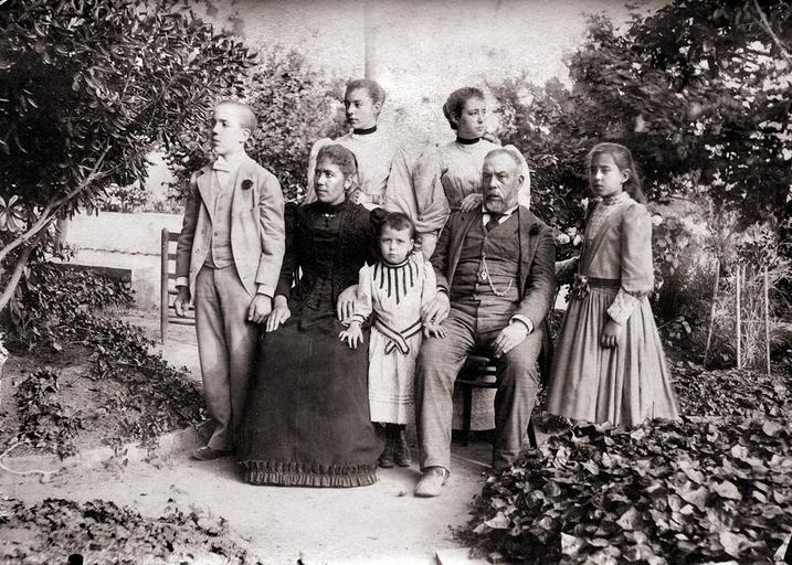 | Keywords: Francesc Brosa y familia.jpg es Francesc Brosa i Casanobas en el jardín de la casa de Tiana con su mujer Catarina Marroig i Marroig y sus cinco hijos Archivo privado familia Brosa Brosa Francesc Brosa i Casanobas Family portrait photographs Black and white photographic portraits of architects Black and white photographs of Catalonia |