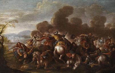 | Keywords: Francesco Simonini Schlachtenszene aus den Türkenkriegen 2.jpg Counterpart of Francesco Simonini Schlachtenszene aus den Türkenkriegen 1 jpg Schlachtenszene aus den Türkenkriegen oil on canvas 56 x 86 cm http //www hampel-auctions com by 1753 Creator Francesco Simonini PD-old-100 18th-century paintings of cavalry in battle Francesco Simonini Paintings of Ottoman battles Images from Hampel Auctions 1750s paintings from Italy | ||||