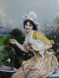 | Keywords: Francesco Vinea Mädchen mit Katze und Vogelkäfig.jpg title Mädchen mit Katze und Vogelkäfig oil canvas 36 x 48 cm signature lower left http //www hampel-auctions com/ Hampel Auctions by 1902 Francesco Vinea 1845 “1902 PD-old-100 Images from Hampel Auctions Francesco Vinea Bird cages in art Paintings of women with cats |