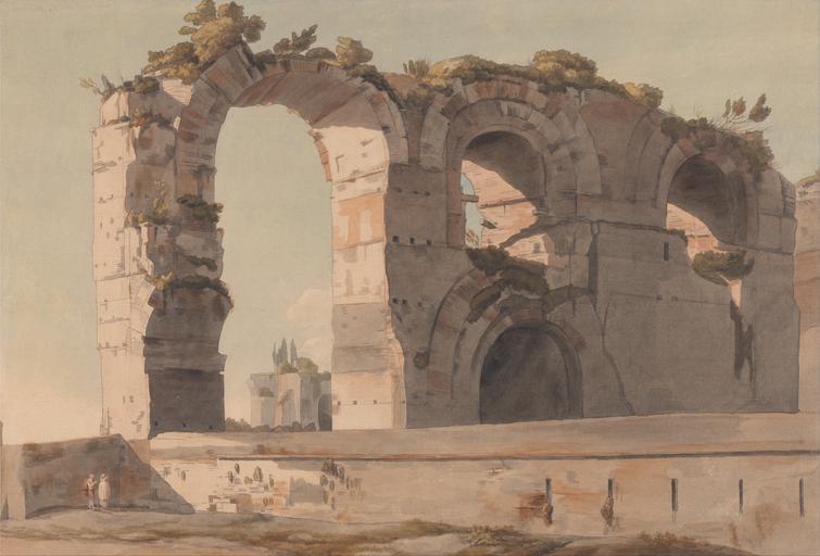 | Keywords: Francis Towne - The Claudian Aquaduct, Rome - Google Art Project.jpg Inscribed in pen and black ink lower right F Towne delt 1785 ; in pen and brown ink verso upper center No 4 a View of the Claudian Aqueduct at Rome looking towards mount Palatine Drawn by Francis Towne 1785 Inscription _Marks Watermark Fleur-de-lis unidentified Inscription _Signed_and_Dated Signed and dated in pen and black ink lower right F Towne delt 1785 Not on View Watercolor with pen and black ink over graphite on medium slightly textured cream laid paper people architectural subject Grand Tour arches landscape special url_id 9wHCVdlidd2krg PD-old-100-1923 1816 Francis Towne Google Art Project works by Francis Towne Aqua Claudia Rome in art Watercolor paintings in Italy |