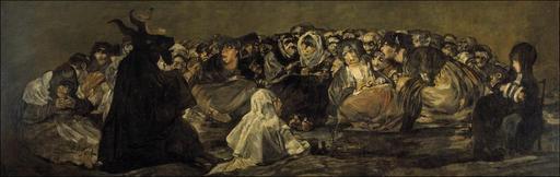 | Keywords: Francisco de Goya y Lucientes - Witches' Sabbath (The Great He-Goat).jpg Artwork Creator Francisco de Goya y Lucientes Black Paintings series and depicts a coven of witches 1821-1823 Oil on canvas 140 5 x 435 7 cm in Museum Prado madrid http //www museodelprado es/coleccion/galeria-on-line/galeria-on-line/obra/saturno-devorando-a-un-hijo/ PD-old-100 Other versions <gallery> File Witches jpg Yorck 1 File Francisco de Goya y Lucientes 086 jpg Yorck 2 </gallery> Pinturas negras Horned God Witches' Sabbath 1820s paintings Witches in paintings Goya Paintings uploaded by Chris Woodrich |