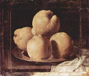 | Keywords: Francisco de Zurbarán 061.jpg Natura morta amb plat de codonys de Quitten auf einem Zinnteller en Still Life with Dish of Quince es Naturaleza muerta con plato de membrillos oil on canvas cm 35 40 5 Institution Museu Nacional d'Art de Catalunya The Yorck Project 10 000 Meisterwerke der Malerei DVD-ROM 2002 ISBN 3936122202 Distributed by DIRECTMEDIA Publishing GmbH between 1633 1664 Creator Francisco de Zurbarán 010092-000 museus en línia 697885 http //mail wikipedia org/pipermail/wikide-l/2005-April/012195 html Other versions PD-old-100 PD-Art-YorckProject Bodegones by Zurbaran 17th-century oil on canvas paintings in Spain Quinces in art Paintings in the Museu Nacional d'Art de Catalunya 17th-century still life paintings in Spain 17th-century still life paintings of fruits |