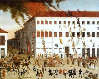 | Keywords: Francisco Muzzi - Fatal e rápido incêndio....jpg Artwork João Francisco Muzzi Italy - 1802 langswitch Fateful and quick fire which turned into ashes on August 23rd 1789 the church its images and the entire Monastery of Nossa Senhora do Parto leaving untouched only the miraculous image of the Virgin Mary Fatal e rápido incêndio que reduziu a cinzas em 23 de agosto de 1789 a igreja suas imagens e todo o antigo Recolhimento de N S do Parto salvando-se unicamente ilesa dentre as chamas a milagrosa imagem de Nossa Senhora 1789 Oil on canvas cm 101 124 3 Museu do Açude Rio de Janeiro Brazil Scanned from MCM catalogue 1996 PD-old-100 Other versions -22 9179 -43 183 Francisco Muzzi 1789 paintings Fire-damaged buildings History of Brazil 1500-1808 Colony Paintings of Rio de Janeiro city History paintings Paintings in the Museus Castro Maya 1780s paintings from Brazil 1789 |