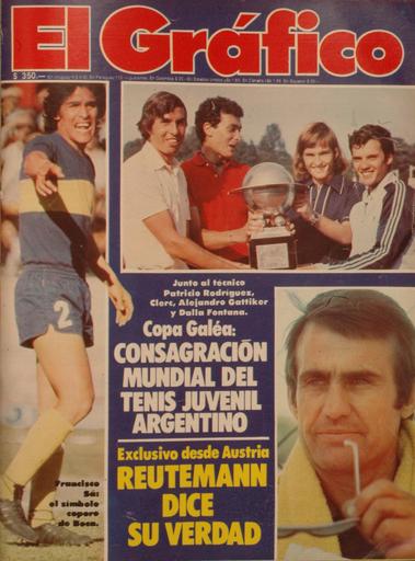 | Keywords: Francisco Sa -Boca Juniors- José Luis Clerc, Alejandro Gattiker, Fernando Dalla Fontana, Patricio Rodríguez, -Copa Galea-, Carlos Reutemann - El Gráfico 3018.jpg El Grafico del 09 de Agosto de 1977 Edicion 3018 http //www elgrafico com ar/thumbs php id 17232 w 1500 h 2000 El Gráfico Not needed public domain PD-AR-Photo El Gráfico | ||||