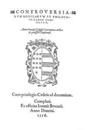 | Keywords: Francisco Vallés (1556) Controversiarum et philosophicarum libri decem.png Francisco Vallés titulado Controversiarum et philosophicarum libri decem En Alcalá de Henares en el año 1556 en la imprenta de Juan Brocar 1556 http //alfama sim ucm es/dioscorides/consulta_libro asp ref X533120844 idioma 0 Francisco Vallés PD-old-100 PD-old-100 1556 books 16th-century books Francisco Vallés Medical books from Spain Books published in Alcalá de Henares University of Alcalá History of Alcalá de Henares Spain in the 1550s Books in Latin Files by User Raimundo Pastor portadas Frontispieces from Spain |