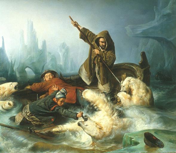 Keywords: Francois Auguste Biard - Fight with Polar Bears.jpg Artwork Creator François-Auguste Biard no Kamp med Isbjørner en Fight with Polar Bears 1839 oil canvas cm 50 62 Nordnorsk Kunstmuseum Tromsø object history credit line accession number 1 http //www gnoxis com/auguste-francois-biard-1799-1882-a-34075 html www gnoxis com - auguste francois biard<br/>2 http //french-painters blogspot com/2011/05/francois-auguste-biard html french-painters blogspot com PD-old-100 Fight with Polar Bears by François-Auguste Biard |