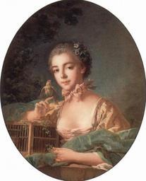 | Keywords: François Boucher 021.jpg artwork Creator François Boucher ca 1760 Oil on canvas Institution Musée Cognacq-Jay The Yorck Project 10 000 Meisterwerke der Malerei DVD-ROM 2002 ISBN 3936122202 Distributed by DIRECTMEDIA Publishing GmbH http //mail wikipedia org/pipermail/wikide-l/2005-April/012195 html other versions <gallery>François boucher ritratto di madame badouin figlia dell'artista JPG</gallery> PD-old-100 PD-Art-YorckProject DEFAULTSORT 1760; Boucher daughter Portrait paintings by François Boucher Paintings by François Boucher in the Musée Cognacq-Jay Paris 1760s oil on canvas paintings in France Portrait 1760s paintings by François Boucher 1760s portrait paintings from France 18th-century oil oval portraits of women at half length 18th-century portrait paintings in France 18th-century portrait paintings with birds 18th-century women of France Bird cages in art Females with birds in art Females with chokers in art Portrait paintings of girls with birds Portraits of artist's children Portrait paintings with natural background Rococo portrait paintings of women Women facing left in art |