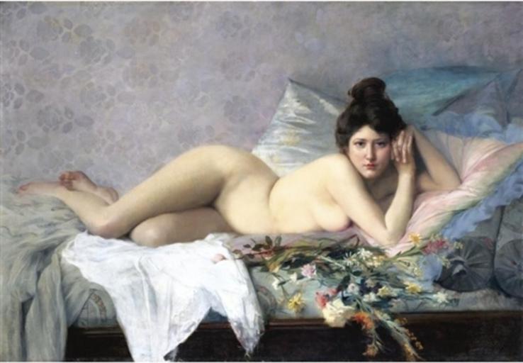 | Keywords: Francois-Maurice Lard -Femme allongée.jpg fr Femme aux fleurs cm 112 163 5 oil on canvas http //images artnet com/WebServices/picture aspx date 20061115 catalog 108761 gallery 111548 lot 00339 filetype 3 Creator François-Maurice Lard François-Maurice Lard Paintings of nude recumbent females prone PD-old-100 |