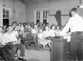 | Keywords: mennonite board of missions mennoniteboardofmissions rural mission work ruralmissionwork arkansas bethel springs church bethelspringschurch bethel springs school bethelspringsschool frank horst frankhorst blackandwhite monochrome indoor black and white Caption: Frank Horst preaching at Bethel Ssprings Church, Culp, Arkansas.The Horsts began their service to the church in 1941. Notice the church is lit with gas lights. circa 1947 Citation: Mennonite Board of Missions. Photograph Collection, Arkansas Rural Mission, 1950-1970. IV-10-7.2 Box 2 Folder 5, photo #13. Mennonite Church USA Archives - Goshen. Goshen, Indiana. Caption: Frank Horst preaching at Bethel Ssprings Church, Culp, Arkansas.The Horsts began their service to the church in 1941. Notice the church is lit with gas lights. circa 1947 Citation: Mennonite Board of Missions. Photograph Collection, Arkansas Rural Mission, 1950-1970. IV-10-7.2 Box 2 Folder 5, photo #13. Mennonite Church USA Archives - Goshen. Goshen, Indiana. |